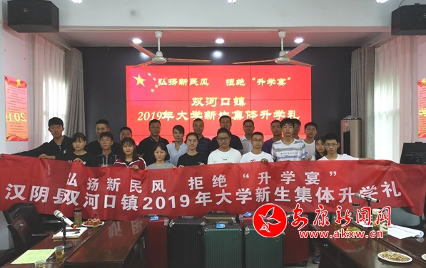 本網(wǎng)訊 (通訊員 黃偉)十年寒窗磨一劍,高考角逐躍龍門。8月9日,漢陰縣雙河口鎮(zhèn)組織舉辦2019年大學(xué)新生集體升學(xué)禮,進(jìn)一步弘揚(yáng)新民風(fēng),拒絕“升學(xué)宴”,倡導(dǎo)勤儉節(jié)約,知恩感恩的社會(huì)新風(fēng)。