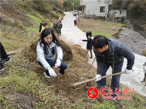 這些栽樹的人,是剛剛從安康城區(qū)趕來的市審計(jì)局的黨員干部。當(dāng)日,該局專門來到花坪村,開展“初心不改、使命不怠,種下希望、成就夢想” 第十次主題黨日活動,用自己的雙手為花坪村栽上拐棗樹苗,用實(shí)際行動推進(jìn)“不忘初心 牢記使命”主題教育深入開展,用為民辦實(shí)事的務(wù)實(shí)做法踐行初心和使命。