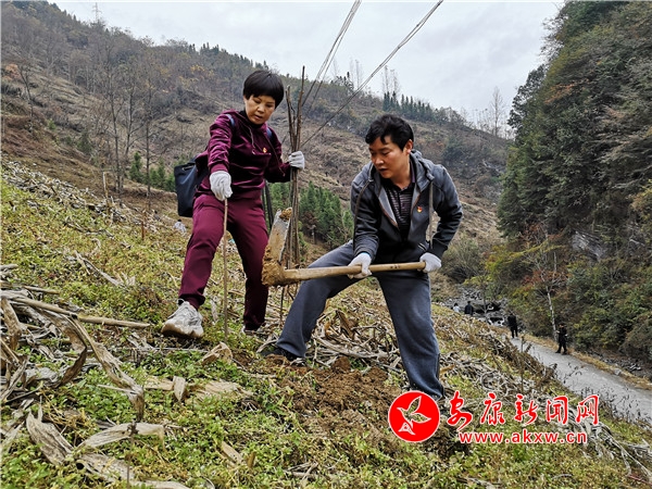 11月8日上午,鎮(zhèn)坪縣曾家鎮(zhèn)花坪村境內(nèi)的一片山地上,40多名男男女女,或手扶樹苗,或揚(yáng)起挖掘鋤頭,揮汗如雨地在坡地上栽著樹苗。他們按照技術(shù)人員講解,時(shí)而栽種,時(shí)而請教,力爭讓自己栽上的每一顆樹苗都能成活。
