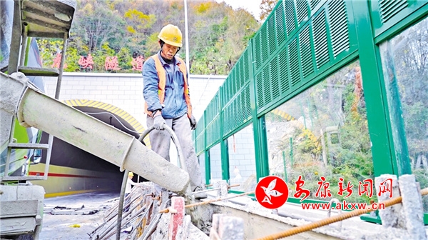 工人正在進(jìn)行護(hù)欄澆筑 張鳳奇 攝