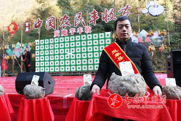 活動期間,對評選出的嵐皋縣優(yōu)秀魔芋園區(qū)、十佳職業(yè)農(nóng)民、魔芋專業(yè)大戶、魔芋采挖比賽優(yōu)勝集體以及嵐皋縣首屆“魔芋王”進(jìn)行了表彰。在現(xiàn)場,一顆重達(dá)10.25公斤的魔芋吸引了觀眾的眼球和拍照,這顆魔芋也被評選為今年的“魔芋王”。魯琦興致勃勃為“魔芋王”獲得者頒獎,并勉勵獲獎農(nóng)民進(jìn)一步堅定通過發(fā)展魔芋產(chǎn)業(yè)增收致富的信心決心。