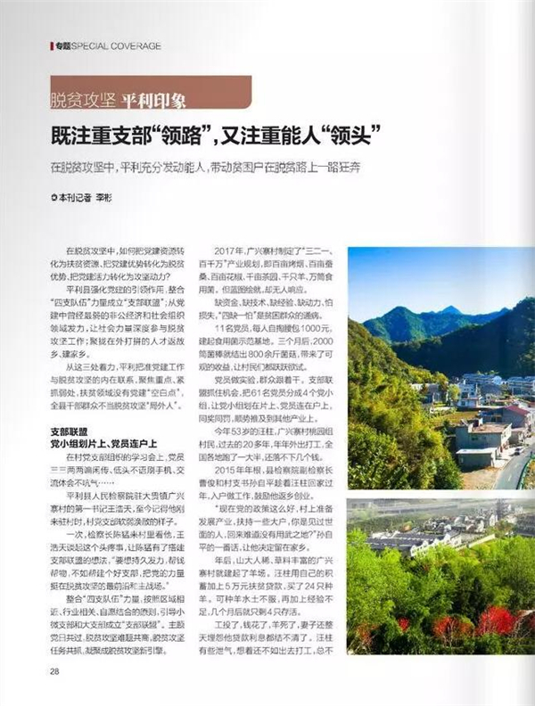 編前語:近年來,平利縣在省市的堅強(qiáng)領(lǐng)導(dǎo)及各方的大力支持下,向貧困發(fā)起總攻,打響脫貧攻堅戰(zhàn),各項工作成效突出,持續(xù)走在全省前列。省委領(lǐng)導(dǎo)要求對平利脫貧攻堅工作好的做法進(jìn)行總結(jié)和推廣,省委組織部和《當(dāng)代陜西》雜志社專程來平利進(jìn)行專題調(diào)研,撰寫系列專題報道《脫貧攻堅平利印象》,并在2019年第2-3期《當(dāng)代陜西》刊登,F(xiàn)將系列文章予以轉(zhuǎn)載,供大家學(xué)習(xí)交流。