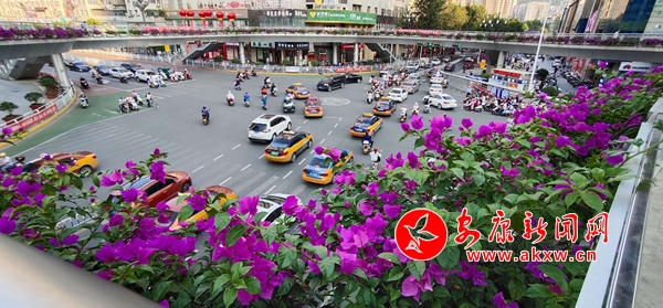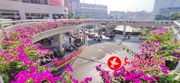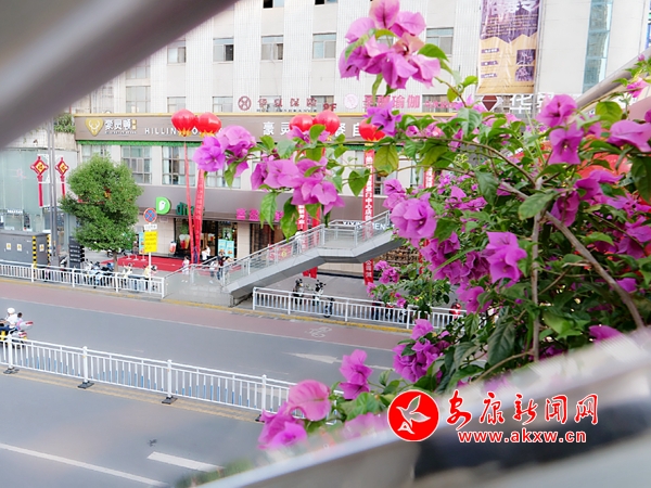 本網訊 (記者 艾蓓)日前,記者途徑安康城區(qū)各大人行天橋時發(fā)現,一抹鮮艷的色彩映入眼簾,遠遠地就看到一簇簇三角梅沿著天橋欄桿一字排開,玫紅色的花朵在綠葉的映襯下更顯絢麗。原本“呆板乏味”的人行天橋在鮮花的裝扮下,變得姿態(tài)萬千,生氣十足,人在橋上行走,仿佛在花廊中穿行,讓人心曠神怡。