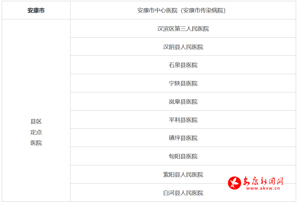 附:安康市新型冠狀病毒感染的肺炎定點(diǎn)醫(yī)院名單