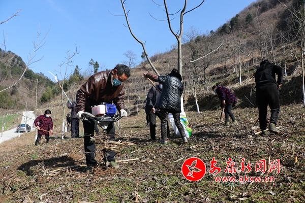3月4日,安康市漢濱區(qū)葉坪鎮(zhèn)椒溝村7組一派忙碌景象,村里群眾正在核桃園區(qū)加緊為核桃樹修枝、上肥。