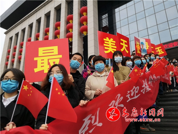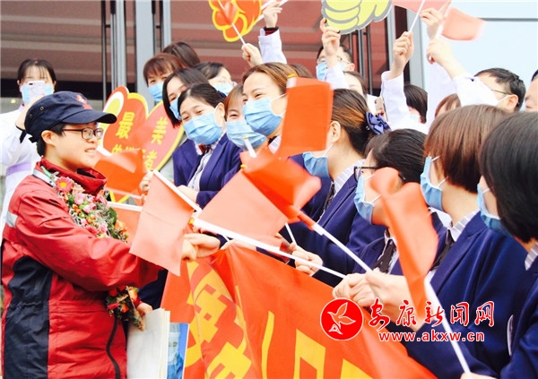 本網(wǎng)訊(記者 肖兵 艾蓓)4月3日下午5時(shí)許,天空淅淅瀝瀝飄著小雨,城市在雨水的洗禮下澄澈明亮,草木紛紛吐露新綠,空氣中彌漫著春日的清香。“致敬白衣天使”“祝賀最美逆行者贊譽(yù)歸來(lái)”安康國(guó)際會(huì)議中心前的廣場(chǎng)上一派喜悅的景象,人們自發(fā)趕來(lái)列著長(zhǎng)隊(duì),拉起條幅,揮舞著旗子,翹首以盼,等待英雄歸來(lái)。