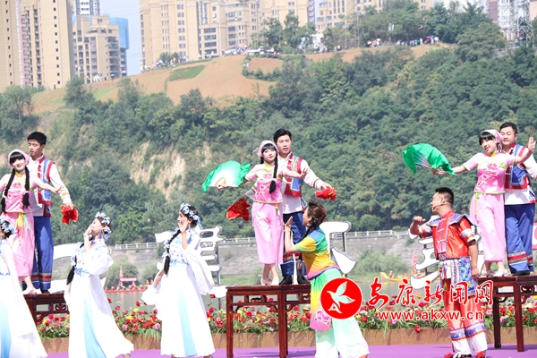 除了傳統(tǒng)儀式,情景劇《總書(shū)記來(lái)到咱身邊》、 民歌聯(lián)唱《秦巴風(fēng)韻》、 漢調(diào)二黃《不負(fù)青山追夢(mèng)想》也相繼登臺(tái),優(yōu)美的舞蹈配合婉轉(zhuǎn)唱腔,寓情于景,將傳統(tǒng)與現(xiàn)代、生活與藝術(shù)融合的恰到好處,特別是《總書(shū)記來(lái)到咱身邊》《不負(fù)青山追夢(mèng)想》生動(dòng)講述了習(xí)近平總書(shū)記平利之行的感人瞬間和殷切囑托,現(xiàn)場(chǎng)觀眾如身臨其境,心潮澎湃,深受鼓舞。期間還穿插進(jìn)行了安康經(jīng)典龍舟民俗——龍舟橫渡和搶鴨子摸鯉魚(yú)。伴隨著震撼的鼓點(diǎn)聲,龍舟健兒劈波斬浪,競(jìng)相角逐,江面上水花飛濺,江水中人如離弦,贏得現(xiàn)場(chǎng)群眾連連拍手吶喊。
