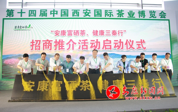 本網(wǎng)訊 (記者 陸青波)8月21日,借助第十四屆西安國(guó)際茶業(yè)博覽會(huì)平臺(tái), 我市在西安啟動(dòng)“安康富硒茶、健康三秦行”首場(chǎng)招商推介活動(dòng)。中國(guó)茶葉流通協(xié)會(huì)會(huì)長(zhǎng)、全國(guó)茶葉標(biāo)準(zhǔn)委員會(huì)主任王慶,陜西省農(nóng)業(yè)農(nóng)村廳黨組成員、副廳長(zhǎng)王韜,陜西省供銷合作總社黨組成員、副主任劉慶,陜西省茶業(yè)協(xié)會(huì)會(huì)長(zhǎng)紀(jì)曉明出席啟動(dòng)儀式,市政協(xié)副主席馬曉旬宣布“安康富硒茶、健康三秦行”招商推介活動(dòng)啟動(dòng)。