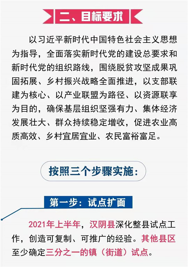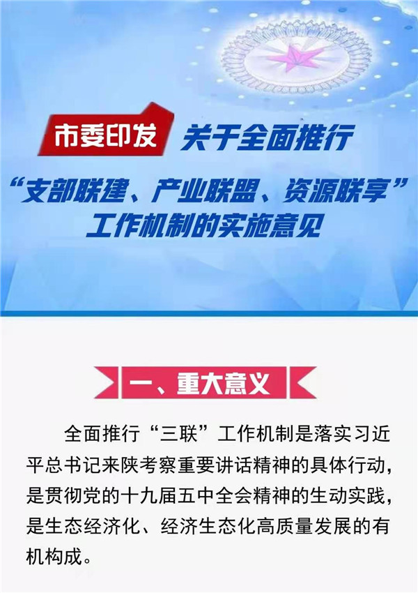 為深入貫徹落實(shí)習(xí)近平總書記來陜考察重要講話精神,實(shí)現(xiàn)鞏固拓展脫貧攻堅(jiān)成果與鄉(xiāng)村振興有效銜接,以高質(zhì)量基層黨建保障高質(zhì)量發(fā)展,按照市委四屆十次全會要求,在總結(jié)漢陰等縣區(qū)試點(diǎn)經(jīng)驗(yàn)的基礎(chǔ)上,現(xiàn)就全面推行“支部聯(lián)建、產(chǎn)業(yè)聯(lián)盟、資源聯(lián)享”(以下簡稱“三聯(lián)”)工作機(jī)制,提出如下實(shí)施意見。