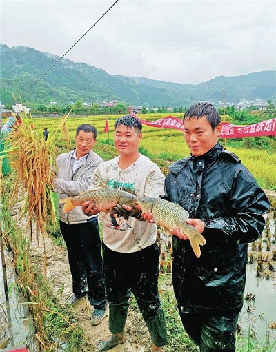 2019年開(kāi)始,平利縣大貴鎮(zhèn)嘉峪寺村大力發(fā)展集體經(jīng)濟(jì),在充分挖掘本地資源優(yōu)勢(shì)的基礎(chǔ)上,成立了寶銀種養(yǎng)殖專業(yè)合作社,依托良好的生態(tài)環(huán)境和區(qū)位優(yōu)勢(shì),加之優(yōu)質(zhì)的山泉水,流轉(zhuǎn)土地種植500畝富硒水稻。經(jīng)過(guò)一年的發(fā)展,當(dāng)年便收獲了20萬(wàn)公斤稻谷,也贏得了廣闊的市場(chǎng)。2020年為進(jìn)一步增加收入,該村產(chǎn)業(yè)能人王銀便萌生了養(yǎng)稻花魚(yú)的想法,隨即請(qǐng)來(lái)了專業(yè)人員探查養(yǎng)殖條件。“這里是黃洋河的流經(jīng)之地,水質(zhì)已達(dá)國(guó)家Ⅱ類標(biāo)準(zhǔn)以上,加上從大山里流淌出來(lái)的山泉水清澈冰涼,適合稻花魚(yú)生長(zhǎng)。”農(nóng)技人員說(shuō)道。有了專業(yè)人士的肯定,王銀心里底氣十足,便開(kāi)始組織寶銀種養(yǎng)殖農(nóng)民專業(yè)合作社采取“合作社+貧困戶”的模式,通過(guò)統(tǒng)一品種、統(tǒng)一種植、統(tǒng)一管理等方式,開(kāi)啟“一田兩用、一水雙收”的發(fā)展模式,養(yǎng)殖生態(tài)稻花魚(yú),陸續(xù)投放了20萬(wàn)尾魚(yú)苗。稻因魚(yú)而優(yōu),魚(yú)因稻而貴。“稻田里養(yǎng)了魚(yú),就不用農(nóng)藥和除草劑了,魚(yú)會(huì)吃掉稻田中的害蟲(chóng)、雜草、掉落的稻花,排出的糞便又能成為水稻生長(zhǎng)的肥料。”王銀說(shuō),稻田養(yǎng)魚(yú)實(shí)現(xiàn)了“一水兩用、一田多收、稻魚(yú)雙贏”。