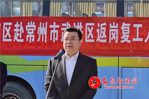 高晶華首先代表市委、市政府對即將離開家鄉(xiāng)、奔赴武進的返崗務工人員致以誠摯問候。他指出,蘇陜一家親,安常故事多。蘇陜勞務協(xié)作是兩地資源互補、共贏發(fā)展的重要之舉,為實現(xiàn)我市剩余勞動力穩(wěn)定就業(yè)、助力脫貧攻堅作出了積極貢獻。經(jīng)過我市漢濱區(qū)和常州市武進區(qū)共同努力,大年初八即組織務工人員集體返崗就業(yè),體現(xiàn)出兩地服務群眾、攜手發(fā)展的共同期盼和務實作風,是雙方深化交流合作的重要成果。希望赴常務工人員安心工作、開心工作,以自己勤勞智慧的雙手譜寫新生活、創(chuàng)造新業(yè)績。