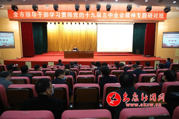 本次專題研討班的主要任務(wù)是深入學(xué)習(xí)領(lǐng)會(huì)黨的十九屆五中全會(huì)公報(bào)、習(xí)近平總書記關(guān)于《中共中央關(guān)于制定國(guó)民經(jīng)濟(jì)和社會(huì)發(fā)展第十四個(gè)五年規(guī)劃和二〇三五年遠(yuǎn)景目標(biāo)的建議》的說(shuō)明,貫通學(xué)習(xí)習(xí)近平總書記兩次來(lái)陜考察重要講話精神,以及黨中央和省委相關(guān)重要會(huì)議、文件精神,堅(jiān)持學(xué)以致用推動(dòng)高質(zhì)量發(fā)展,奮力譜寫安康新時(shí)代追趕超越新篇章。開班式上,全體學(xué)員集中收看了省委書記劉國(guó)中在全省市廳級(jí)主要領(lǐng)導(dǎo)干部學(xué)習(xí)貫徹黨的十九屆五中全會(huì)精神專題研討班開班式上的輔導(dǎo)講話視頻。