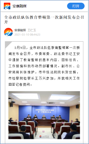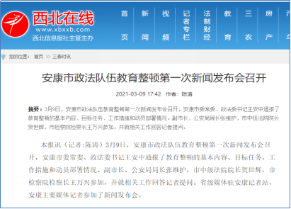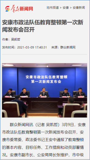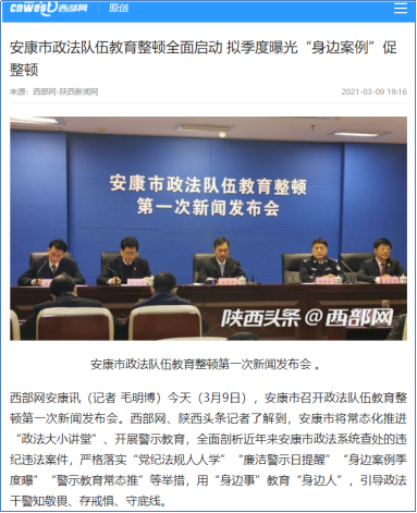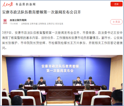 央廣網(wǎng)、群眾新聞網(wǎng)、西部網(wǎng)等媒體,紛紛通過(guò)多平臺(tái)、立體化的傳播途徑和手段,宣傳安康政法隊(duì)伍教育整頓工作。