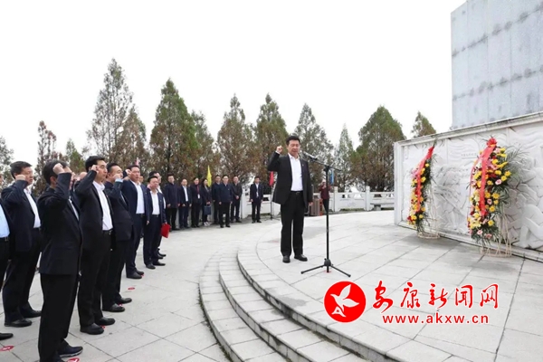 牛蹄嶺戰(zhàn)役遺址是全市愛國(guó)主義教育基地,中國(guó)人民解放軍第十九軍在此打響的牛蹄嶺戰(zhàn)役為解放安康乃至陜南作出了重要貢獻(xiàn)。春日的牛蹄嶺蒼勁翠郁、豐碑聳立。上午9時(shí)許,市委常委班子成員拾階而上來到牛蹄嶺戰(zhàn)役紀(jì)念碑廣場(chǎng),向在戰(zhàn)役中英勇犧牲的革命烈士默哀并敬獻(xiàn)花籃,表達(dá)緬懷之情。面對(duì)黨旗,大家重溫入黨誓詞,鏗鏘的宣誓聲響徹牛蹄嶺、回蕩山谷間。隨后,大家認(rèn)真聆聽激戰(zhàn)牛蹄嶺的紅色歷史,瞻仰牛蹄嶺戰(zhàn)役紀(jì)念碑,追憶革命先輩英勇無畏、舍生取義的崢嶸歲月。