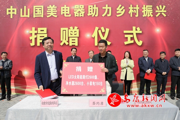 據(jù)了解,此次中山國美電器制造有限公司向我市捐贈LED太陽能路燈2600盞、凈水器2600臺、小家電150個,價值1600萬元,旨在解決農村群眾出行的公共照明問題和改善鎮(zhèn)(村)衛(wèi)生院(所)、村委會、學校、敬老院、社區(qū)工廠的飲水條件,鞏固脫貧成果,助力鄉(xiāng)村振興。