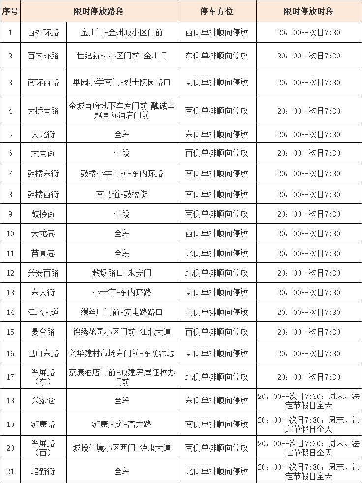 本網(wǎng)訊 5月31日,安康市公安局漢濱分局交警大隊發(fā)布公告,為落實“我為群眾辦實事”公安交管12項便利措施,緩解城鎮(zhèn)老舊小區(qū)“停車難”問題。經(jīng)研究,自2021年6月1日起,安康城區(qū)17條路段準(zhǔn)許夜間停放車輛,4條路段準(zhǔn)許夜間、周末、法定節(jié)假日全天停放車輛。4Rs安康新聞網(wǎng)