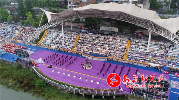 舞臺上,情景劇《小康路上又一年》展現(xiàn)安康新時代追趕超越,邁向小康之路的生動故事和精彩瞬間,2019年在星光大道總決賽的舞臺上大放異彩的董飛帶來了歌舞表演《故鄉(xiāng)情》,漢調(diào)二黃研究院帶來全新作品《天女散花》選段,高新四小學生表演啦啦操《激情安康》是安康兒女踐行全民運動的真實寫照,民歌聯(lián)唱《山之歌》唱響新安康的時代風貌,航空公司美麗端莊的空姐和帥氣十足的空少用《把安康帶回家》展示表演為安康代言。最后,第二十一屆中國安康漢江龍舟節(jié)主題活動在歌曲《hello安康》喜悅、歡快的氛圍中圓滿落幕。