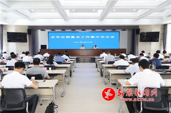 本網訊(記者 吳單)6月28日,市委常委、常務副市長高晶華主持召開全市近期重點工作集中交辦會。市政府秘書長陳伍文參加會議。