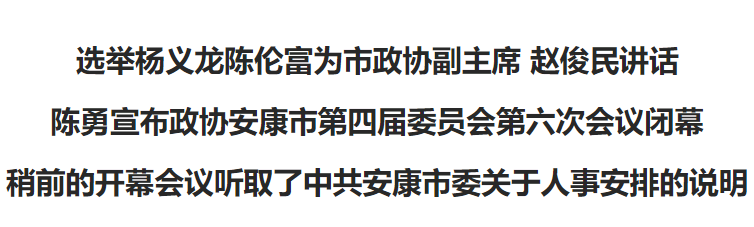 會議聽取了中共安康市委關(guān)于人事安排的說明。