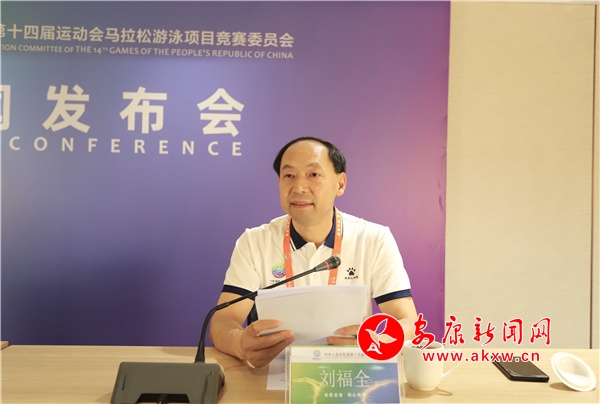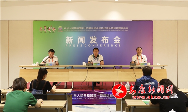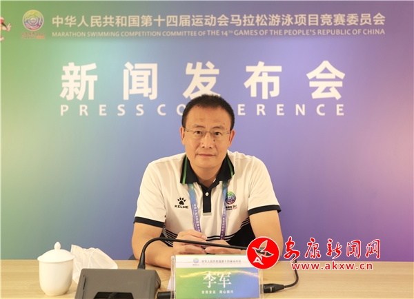 本網(wǎng)訊(記者 魏濤 陸青波)9月11日下午,第十四屆全國(guó)運(yùn)動(dòng)會(huì)馬拉松游泳項(xiàng)目賽前新聞發(fā)布會(huì)在瀛湖酒店新聞發(fā)布廳召開。十四運(yùn)會(huì)馬拉松游泳項(xiàng)目競(jìng)委會(huì)副主任、國(guó)家體育總局游泳運(yùn)動(dòng)管理中心副書記李軍,十四運(yùn)會(huì)馬拉松游泳項(xiàng)目競(jìng)委會(huì)副主任、安康市政府副秘書長(zhǎng)劉福全出席發(fā)布會(huì)并介紹相關(guān)情況。