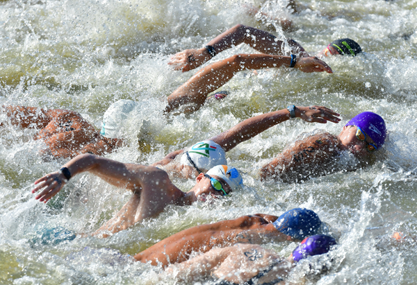 本網(wǎng)訊 (記者 魏濤)9月13日9時(shí),十四運(yùn)會(huì)男子10公里馬拉松游泳37名運(yùn)動(dòng)員在瀛湖翠屏島公開水域展開激烈角逐。s6a安康新聞網(wǎng)