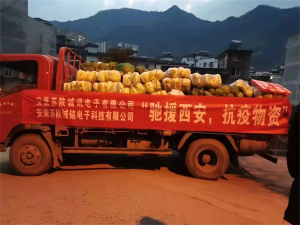 1月1日上午,11輛總價(jià)值121.8萬元抗疫物資專車從漢濱駛出,中午時(shí)分到達(dá)西安雁塔區(qū)和航天基地。這批滿載著廣大民營企業(yè)愛心的蔬菜、豬肉、米面油、礦泉水、牛肉醬及漢濱特產(chǎn)將在當(dāng)?shù)亟y(tǒng)一調(diào)配下進(jìn)入各大社區(qū),用于保障社區(qū)居民的日常生活及安全防護(hù)。