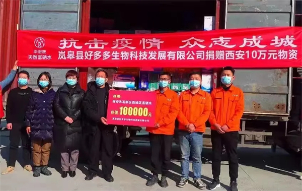 嵐皋縣好多多生物科技發(fā)展有限公司捐贈(zèng)總價(jià)值10萬元的飲用水