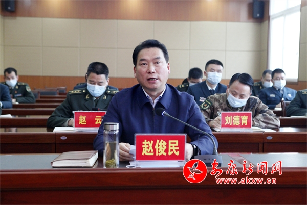趙俊民強(qiáng)調(diào),要舉旗鑄魂強(qiáng)引領(lǐng),鞏固拓展黨史學(xué)習(xí)教育成果,持續(xù)深入學(xué)習(xí)貫徹習(xí)近平強(qiáng)軍思想,堅(jiān)決、全面、具體、無條件地貫徹軍委主席負(fù)責(zé)制,增強(qiáng)“四個(gè)意識”、堅(jiān)定“四個(gè)自信”、做到“兩個(gè)維護(hù)”,把堅(jiān)定捍衛(wèi)“兩個(gè)確立”落實(shí)到部隊(duì)建設(shè)實(shí)踐中,確保強(qiáng)軍興軍始終沿著正確方向前進(jìn)。要認(rèn)真落實(shí)新時(shí)代黨的建設(shè)總要求,嚴(yán)格落實(shí)《中國共產(chǎn)黨軍隊(duì)黨的建設(shè)條例》《中國共產(chǎn)黨軍隊(duì)委員會(支部)工作規(guī)定》,不斷增強(qiáng)各級黨組織的領(lǐng)導(dǎo)力、組織力、執(zhí)行力。要練兵備戰(zhàn)提能力,堅(jiān)持一切工作向能打仗、打勝仗聚焦,持續(xù)增強(qiáng)全民國防觀念,著力提高國防動員能力,不斷加強(qiáng)民兵訓(xùn)練基地和民兵隊(duì)伍建設(shè),突出抓好實(shí)戰(zhàn)化訓(xùn)練,切實(shí)做到召之即來、來之能戰(zhàn)、戰(zhàn)之必勝。