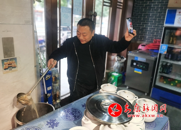 白天店內(nèi)忙碌的時候,“70后”的梁存杰會舉著手機,記錄下食客排隊購買自家鹵豬蹄的畫面。到了傍晚,當(dāng)?shù)陜?nèi)的客流達(dá)到頂峰時,后廚里忙碌的場景又成了他的視頻素材。他會在閑暇之余將這些拍攝的素材進(jìn)行簡單剪輯后發(fā)布在自己的短視頻賬號上和朋友圈里,他的目的很簡單:“就是想讓大家都知道天源飯莊,在短視頻上介紹新菜,包括客戶的評價,都是為了吸引更多的顧客,做生意嘛,就是圖一個生意興!”