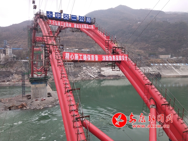 記者了解到,蜀河漢江大橋由于橋梁位置受地形所限,經(jīng)多次論證,最終確定改造方案為:拆除重建全橋上部結(jié)構(gòu)和部分下部結(jié)構(gòu),對部分下部結(jié)構(gòu)予以加固利用,新建主橋上部結(jié)構(gòu)采用2×120m中承式鋼管混凝土雙連拱橋,橋梁寬度15m,項目總投資8173萬。自2020年4月底開工建設(shè)以來,各參建單位克服舊橋拆除技術(shù)復(fù)雜、安全風(fēng)險高、創(chuàng)新工藝多以及新建橋梁異形結(jié)構(gòu)多、施工繁瑣和洪水影響等困難,通過科學(xué)組織、精心施工,目前主拱圈軸線、高程等技術(shù)指標滿足要求,具備合龍條件。下一步將繼續(xù)高標準、快節(jié)奏實施管壓混凝土澆筑、吊桿及橋面結(jié)構(gòu)安裝等關(guān)鍵工序,全力沖刺“七一”前建成通車目標。