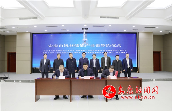 會(huì)上,趙俊民還就組建市釩材儲(chǔ)能產(chǎn)業(yè)鏈鏈長制工作專班、推動(dòng)液流儲(chǔ)能示范應(yīng)用等事宜作了安排部署,對(duì)與會(huì)人員提出的問題作了一一回應(yīng)。華電陜西能源有限公司分別與華秦儲(chǔ)能技術(shù)有限公司、恒口示范區(qū)簽訂了合作協(xié)議。