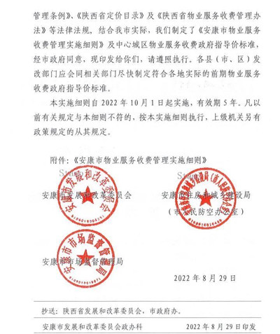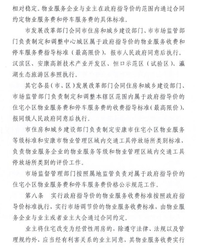 各縣(市、區(qū))發(fā)展改革局、住建局、市場監(jiān)督管理局,安康高新技術產業(yè)開發(fā)區(qū)管委會、恒口示范區(qū)(試驗區(qū))管委會、瀛湖生態(tài)旅游區(qū)管委會,各有關物業(yè)服務企業(yè):