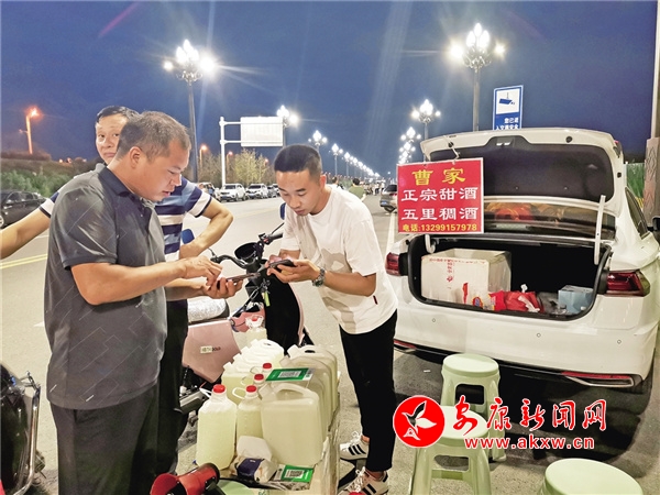 記者上前和他攀談起來(lái),眼前這位能說(shuō)會(huì)道的小伙子白天在漢濱區(qū)一家物業(yè)公司上班,下班后為了給自己再找點(diǎn)事干,他便會(huì)拉上20多桶自家做的稠酒到四橋底下售賣(mài)。兩個(gè)多月的時(shí)間,除了下雨,雷玉濤幾乎每天都來(lái)。“前期大家都不知道我在這里擺攤,我就發(fā)朋友圈和抖音,朋友們知道了又轉(zhuǎn)發(fā)傳播,后面來(lái)的顧客很多都是借助互聯(lián)網(wǎng)傳播來(lái)的新顧客。曹家稠酒在安康做了20多年,也算小有名氣,現(xiàn)在我每天帶來(lái)的稠酒基本上都能賣(mài)完,一天可以賺400多元。”