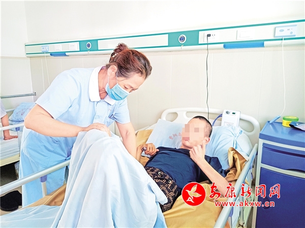 身材敦實(shí)的中年漢子魏龍江,動(dòng)作敏捷而又輕柔地?cái)D到對(duì)面去,打開(kāi)老人床上那折疊成方塊的被子,又揭開(kāi)床單、抽出墊褥。大家在他的展示中,看不到臟污,聞不到尿騷與臭氣。接著,他又把輪騎轉(zhuǎn)了一圈,讓我們真切地看到:老人的皮膚是健康的,衣服是干凈的,身上也沒(méi)有什么異味兒。