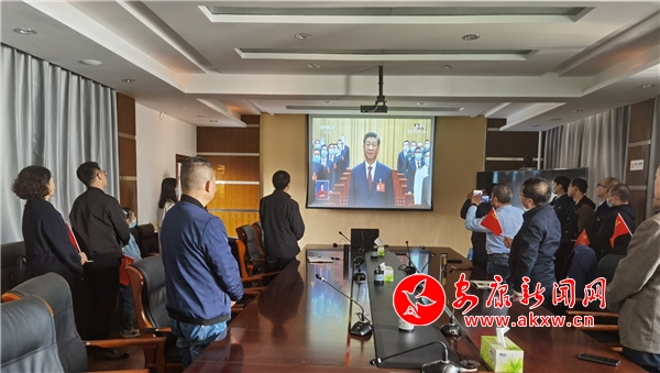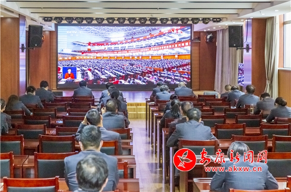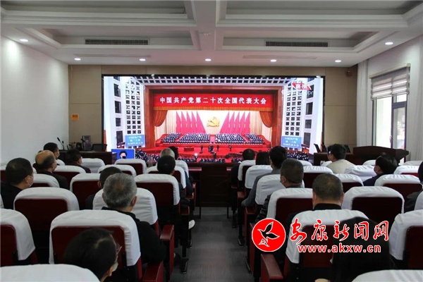 △市工信局(國資委)機(jī)關(guān)組織黨員干部收聽收看中國共產(chǎn)黨第二十次全國代表大會開幕會直播。(通訊員 靳嬌 )