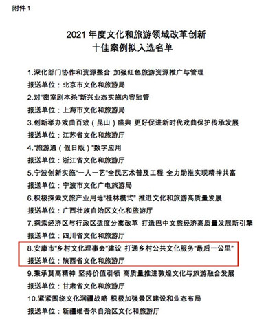 關于2021年度文化和旅游領域改革創(chuàng)新十佳案例、優(yōu)秀案例名單的公示