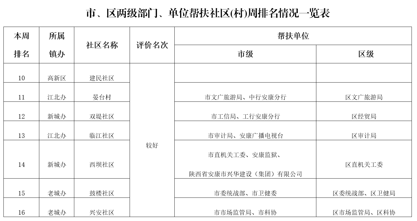 附件:市、區(qū)兩級(jí)部門幫扶社區(qū)(村)周排名情況一覽表