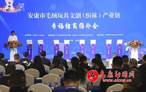 晚秋,蓉城。中國西部國際博覽城9號大廳里座無虛席,氣氛熱烈。2022年11月1日3時許,安康市毛絨玩具文創(chuàng)(織襪)產(chǎn)業(yè)專場招商推介會如期召開。安康市常務副市長從中國玩具和嬰童用品協(xié)會會長梁梅手中接過“建設(shè)毛絨玩具文創(chuàng)產(chǎn)業(yè)集群建設(shè)突出貢獻獎”的金字牌匾時,大廳里響起經(jīng)久不息的熱烈掌聲,許多人百感交集。