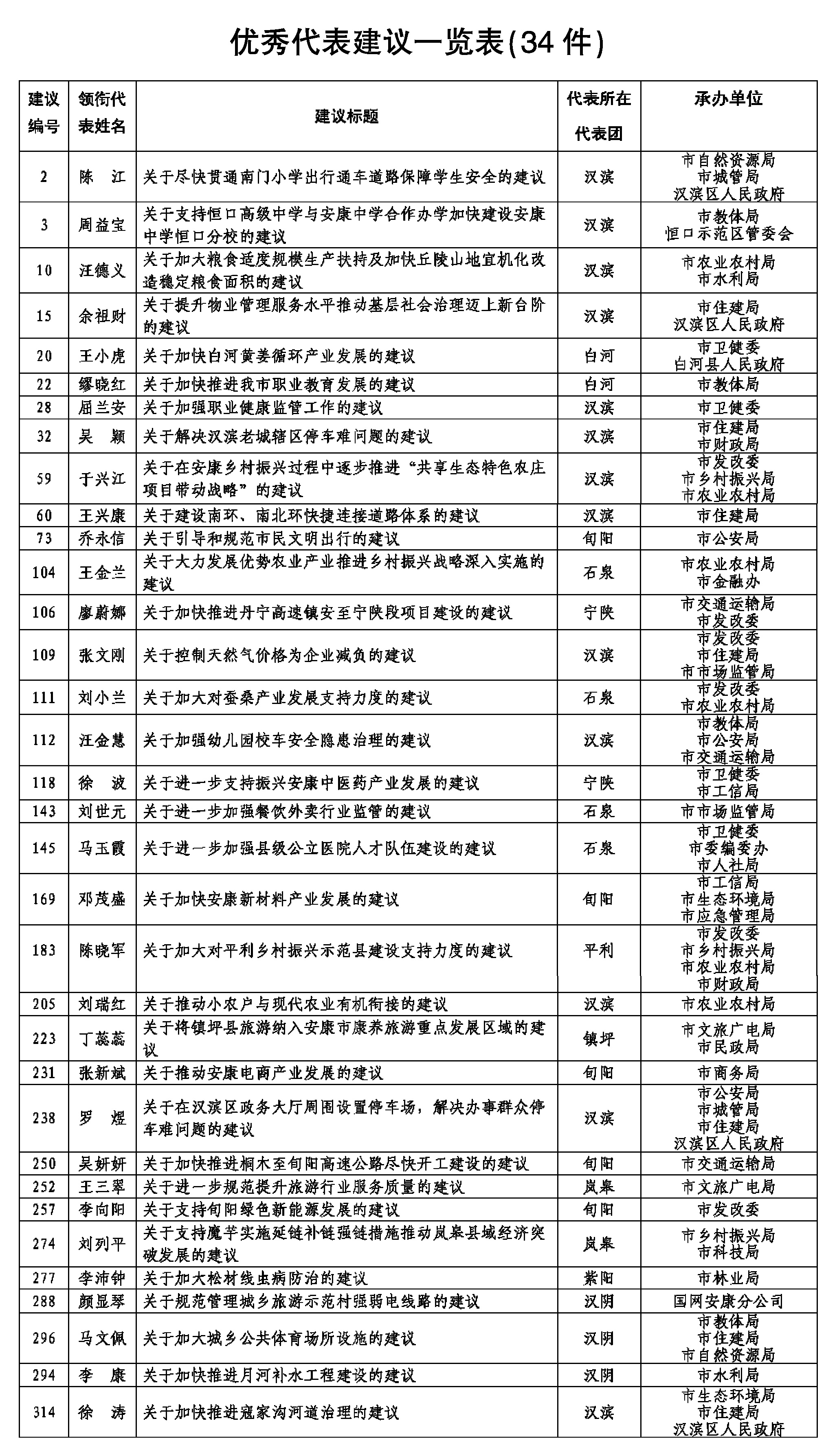 市人大代表向市級國家機關提出建議、批評和意見,是憲法和法律賦予的民主權利,是代表人民直接參與管理國家和社會事務的有效形式。市五屆人大一次會議以來,全體市人大代表深入學習貫徹習近平新時代中國特色社會主義思想和黨的二十大及中央人大工作會議精神,緊緊圍繞全市中心工作和人民群眾普遍關心關注的熱點難點問題,依法履行職責,積極建言獻策,共提出了321件代表建議,為推進安康經(jīng)濟社會發(fā)展和民主法治建設凝聚了智慧、增進了共識、貢獻了力量。為樹立典型、推進工作,市人大常委會決定,對陳江等代表提出的34件優(yōu)秀代表建議予以通報表揚。