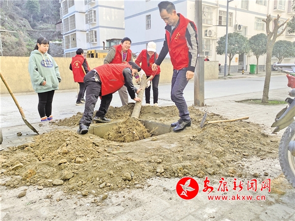 紫陽縣高橋鎮(zhèn)桂花樹社區(qū)黨支部開展“傳承雷鋒精神,爭做綠色使者”主題黨日活動(dòng),黨員們共植樹300余棵,進(jìn)一步美化了社區(qū)環(huán)境。 李放 王順勤 攝