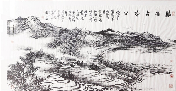 當時在現(xiàn)場采訪的安康電視臺主任記者程云也對這一點印象深刻,她很少見到有畫家在井井有條地回答媒體提問的同時,又能飛快自如地運筆作畫,而且創(chuàng)作的是難度很大的焦墨畫。“他滿腹激情,口才很好,我們還沒來得及完全領(lǐng)悟他的‘千毫皴’畫法的神奇,一幅生動的古梯田‘千毫皴’寫意畫就已經(jīng)完成了,小小的畫紙,呈現(xiàn)出山川的氣勢,在場觀者無不為之嘆服。”