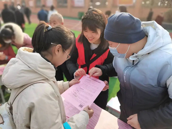 2月1日,中廠鎮(zhèn)機關(guān)支部黨員在宣傳政策。通訊員 王婷 攝