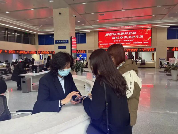 2月24日,在縣政務(wù)服務(wù)中心,導(dǎo)辦員在為群眾辦理個體戶網(wǎng)上登記申報。通訊員 湯麗 攝