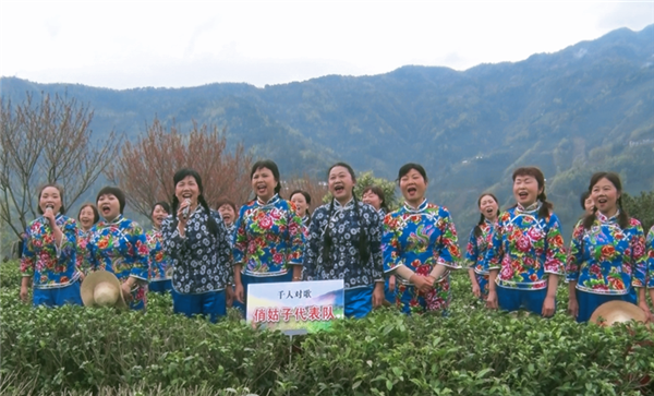 茶園里滿目蒼翠,茶香四溢,紫陽(yáng)民歌愛(ài)好者們穿行在茶園間,紛紛擺開(kāi)架勢(shì),唱起動(dòng)聽(tīng)的紫陽(yáng)民歌,你方唱罷我來(lái)和,一唱一和,歌聲或深情款款、緩慢抒情,或節(jié)奏激昂、互不相讓,一時(shí)間,動(dòng)聽(tīng)的歌聲此起彼伏,訴說(shuō)著紫陽(yáng)悠久的民俗和茶文化,圍觀的群眾也不由自主地加入其中,鼓掌歡呼,在一片歡歌笑語(yǔ)中將現(xiàn)場(chǎng)氛圍推向高潮。第一次參與對(duì)歌的周瑞莉表示,以前只是在舞臺(tái)下聽(tīng)過(guò)紫陽(yáng)民歌,而今天親身參與千人對(duì)唱,覺(jué)得特別的高興、特別震撼,自己要多學(xué)幾首紫陽(yáng)民歌,也希望更多的朋友來(lái)學(xué)習(xí)傳揚(yáng)紫陽(yáng)民歌。