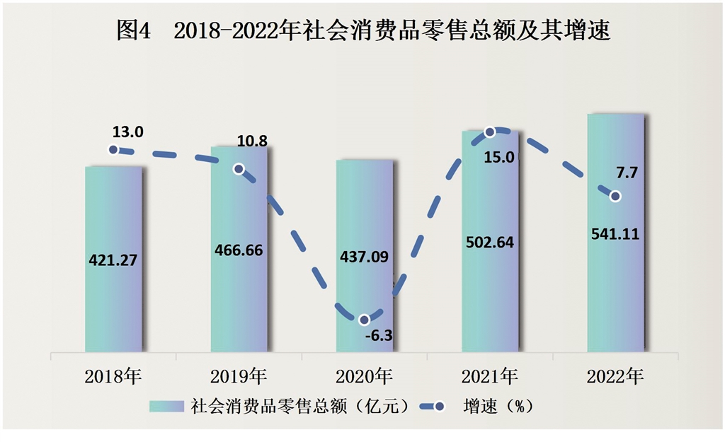 全年社會(huì)消費(fèi)品零售總額541.11億元,比上年增長7.7%。其中限額以上企業(yè)(單位)實(shí)現(xiàn)零售額330.08億元,增長12.0%。