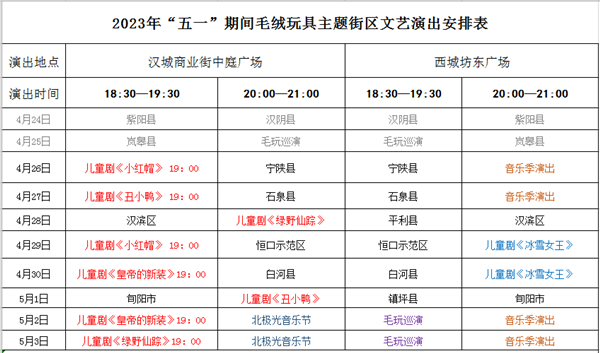 2023年“五一”期間毛絨玩具主題街區(qū)文藝演出時(shí)間安排表公布