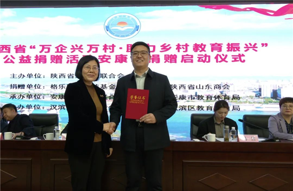 孟平代表市委、市政府向陜西省工商聯(lián)和捐贈方表示感謝,并向格樂國際公益基金管委會頒發(fā)了榮譽證書。她在講話中指出,希望各受助學校確保設備設施功能完好、后勤保障充分有序,服務教育教學、賦能人才成長,要引導廣大學生大力發(fā)揚滴水之恩、涌泉以報的反哺精神,崇文尚學、尊師重教的優(yōu)良傳統(tǒng),以實干實績書寫教育振興答卷。各級教育部門要以推進教育強市為目標,用實際行動助推教育振興;各級“萬企興萬村”行動領導小組成員單位要廣泛動員社會各界協(xié)同作戰(zhàn)、傾力支持,積極搭建教育捐贈平臺,引導大家主動參與捐贈行動。