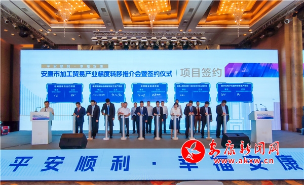 借助第13屆中國加工貿(mào)易產(chǎn)品博覽會東風,我市于5月10日下午在東莞市舉行了安康市承接加工貿(mào)易產(chǎn)業(yè)梯度轉移推介會暨簽約儀式。陜西省商務廳副廳長張文政,市委常委、常務副市長高晶華分別致辭,商務部外貿(mào)司二級巡視員蘇斌,陜西省商務廳二級巡視員昌利以及廣東省商務廳、東莞市商務局相關領導出席會議。廣東?悼毓杉瘓F有限公司、東莞市玖月汽車貿(mào)易有限公司、廣東陜商實業(yè)有限公司等150余家企業(yè)代表參會。