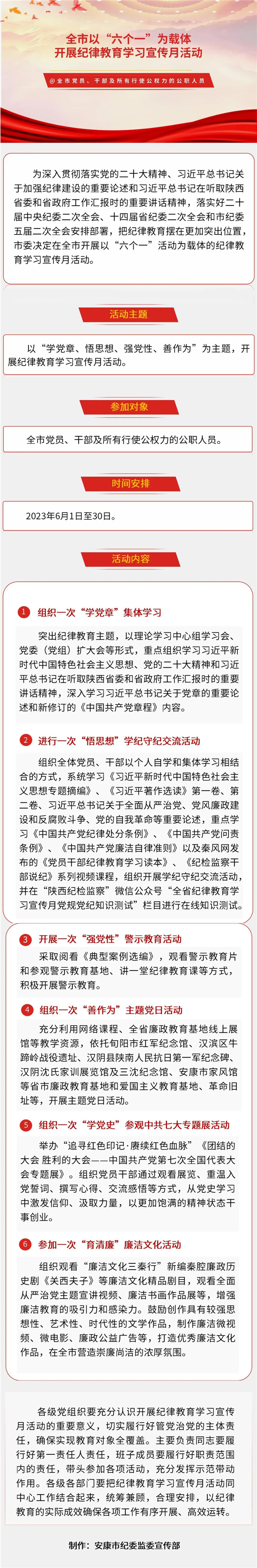 全市以“六個(gè)一”為載體開(kāi)展紀(jì)律教育學(xué)習(xí)宣傳月活動(dòng)