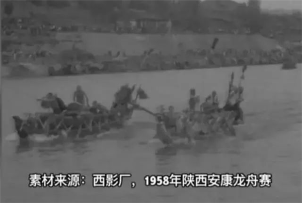 新中國成立后,安康龍舟競渡的名氣依然在線,西安電影制片廠建廠后拍攝的第一部電影《慶豐收賽龍舟》,“主角”就是安康賽龍舟,電影用紀(jì)實(shí)的手法,記錄了1958 年端陽節(jié)安康城區(qū)舉辦龍舟賽的盛況,后來全國發(fā)行。